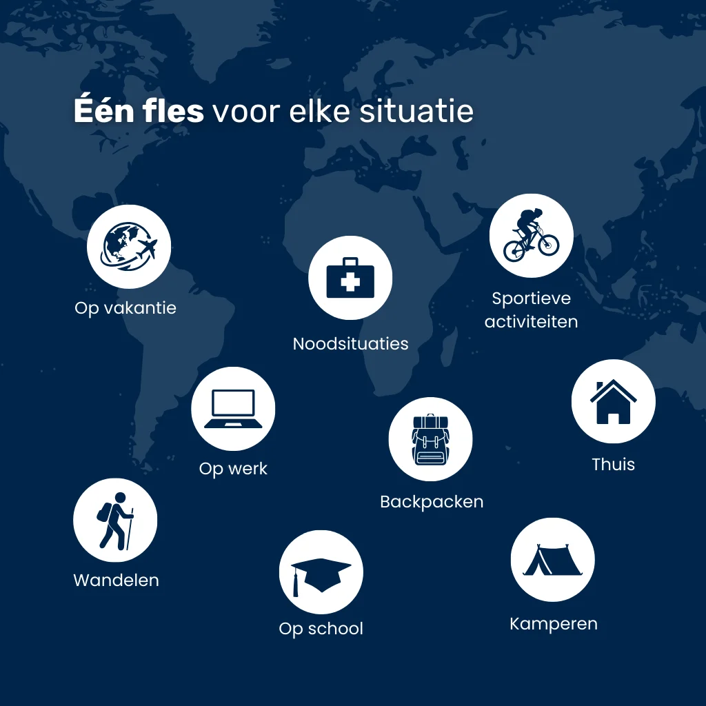 De fles waar meer dan 500.000+ wereldreizigers, vakantiegangers en outdoor-liefhebbers op vertrouwen.